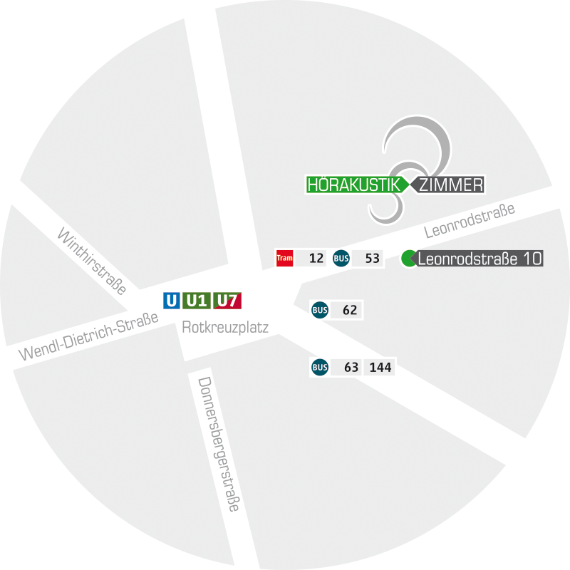 Sie finden unser Hörstudio gleich beim Rotkreuzplatz: Leonrodstraße 10 in 80634 München